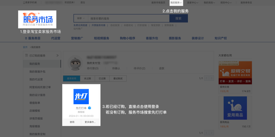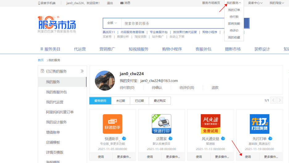 1?.在淘寶服務(wù)市場登錄您的店鋪:https://fuwu.taobao.com/index.htm