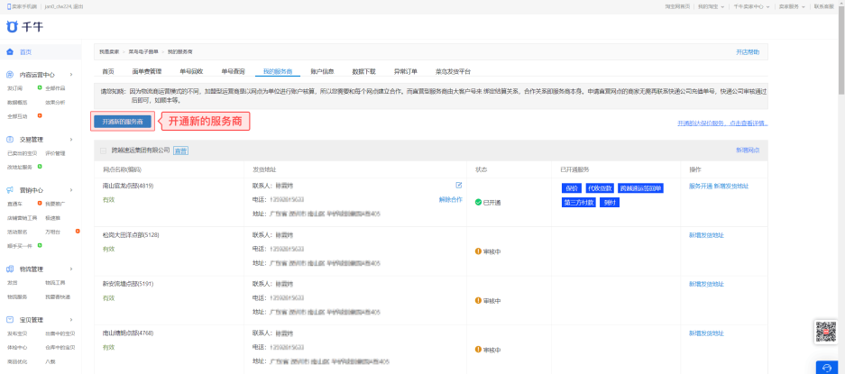 在我的服務(wù)商版塊里點(diǎn)擊“開通新的服務(wù)商”