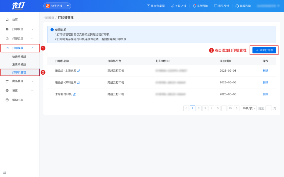 1?? 使用店鋪B授權(quán)登錄先打,打印模板 ?? 快遞單模板,點(diǎn)擊新增模板