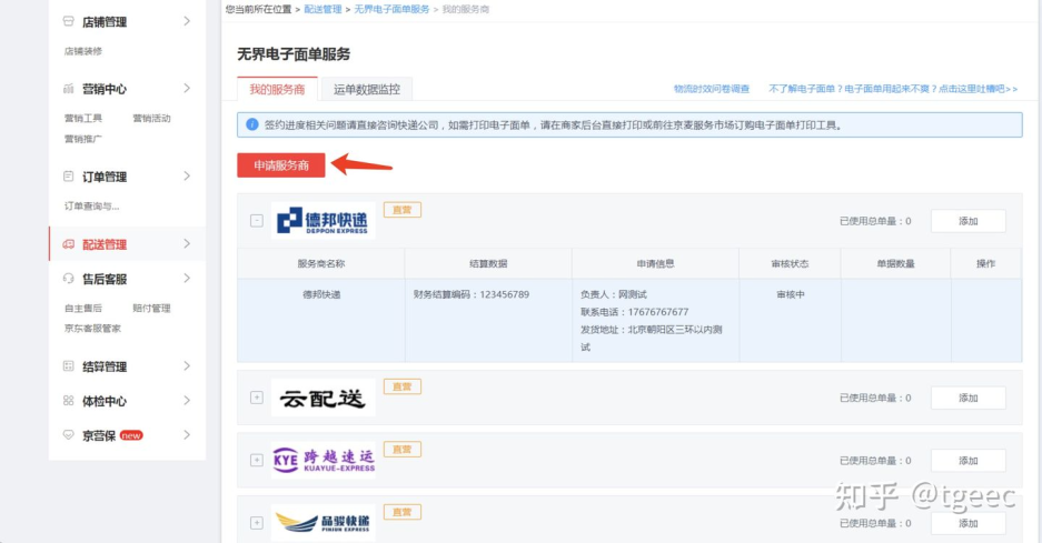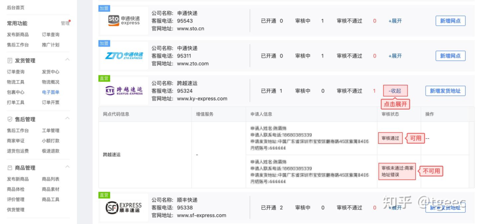 注:目前只有中通、圓通、極兔支持線上申請,其他快遞公司需要線下申請