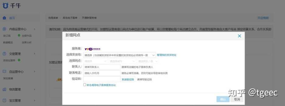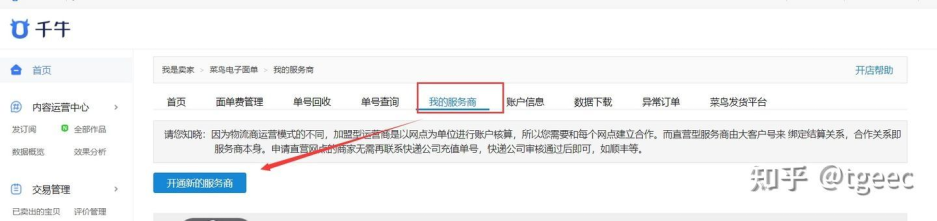 所有非菜鳥電子面單都需要切換,在 淘寶千牛后臺(tái) - 電子面單后臺(tái) 申請開通就可以 ,